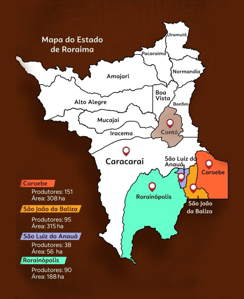 Com uma área plantada de 52 hectares e o engajamento de 25 produtores rurais, o projeto já conta com um ecossistema institucional pactuado, que garante o apoio necessário para consolidação do Polo Cacaueiro em Roraima.