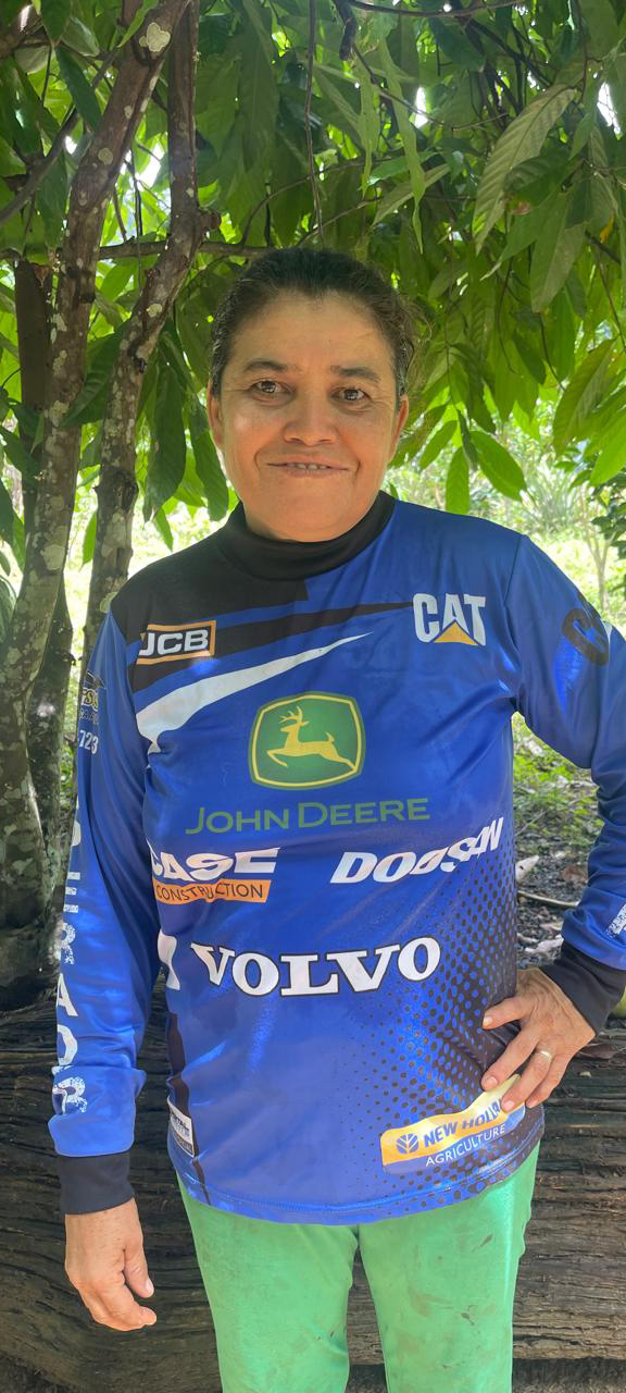 Vilmara Ramos da Costa tem 49 anos, é mãe de cinco filhos e vive na região sul do estado de Roraima, na comunidade Entre Rios, município de Caroebe, mais precisamente na Vicinal 15, quilômetro 9. Iniciou o cultivo de cacau por volta de 2018, motivada por sua iniciativa pessoal e vontade de experimentar novas possibilidades na agricultura.